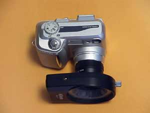 Nikon Coolpix885に装着した状態(上から)。かなり大きいですね(^^;;