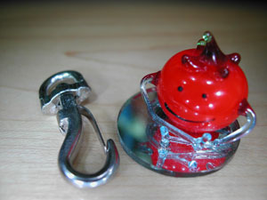 撮影例:ガラス細工のトマト君。たぶんレンズ前10cmくらい、少し離れるとやはり少し暗い。